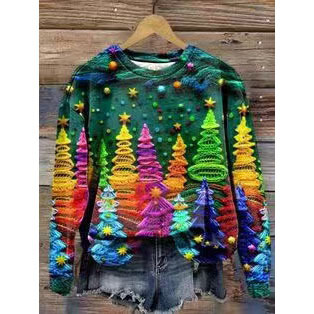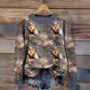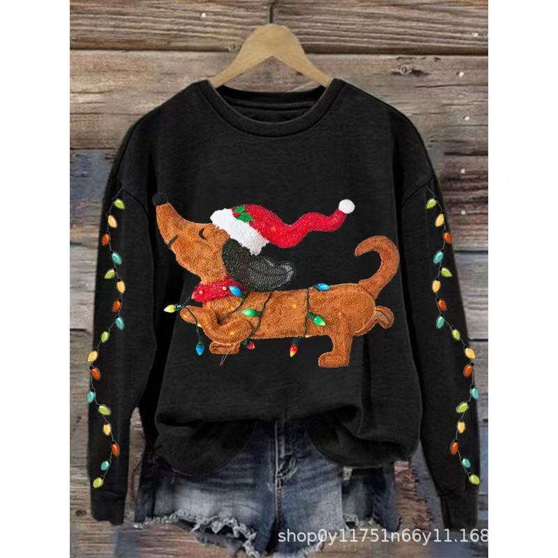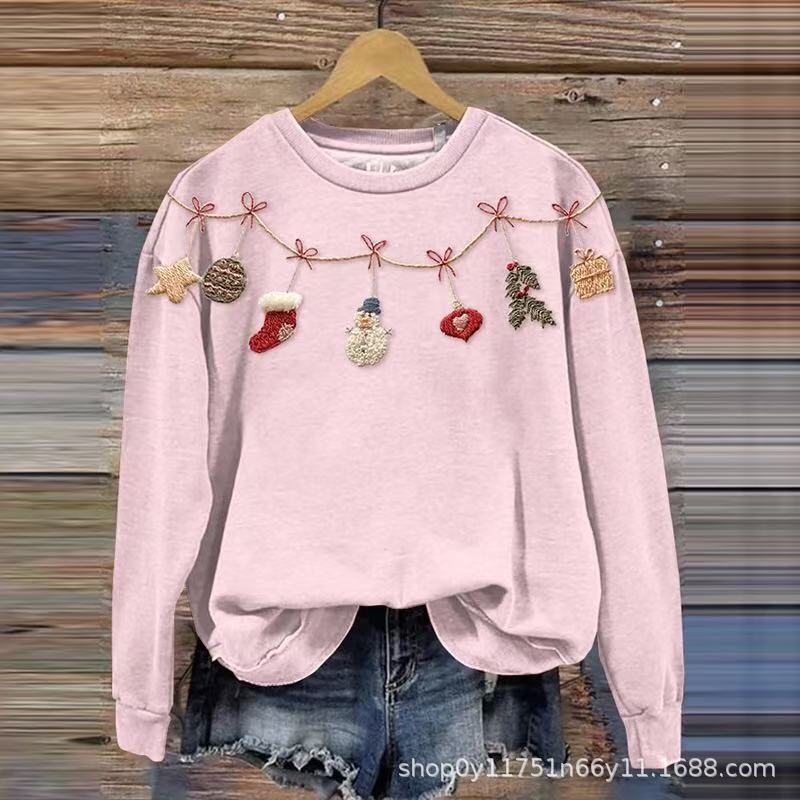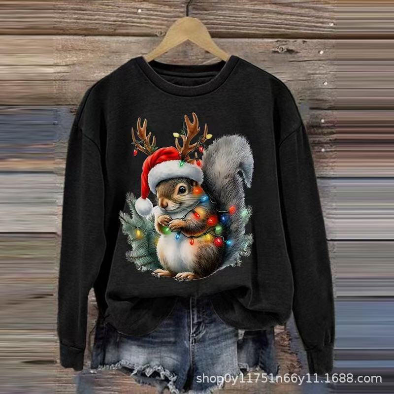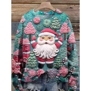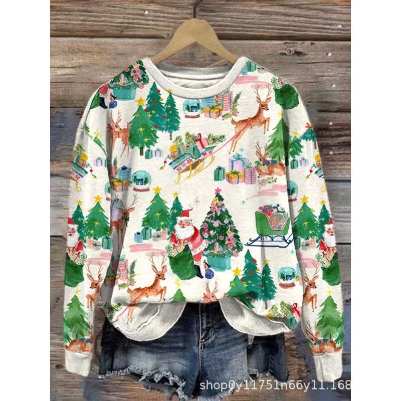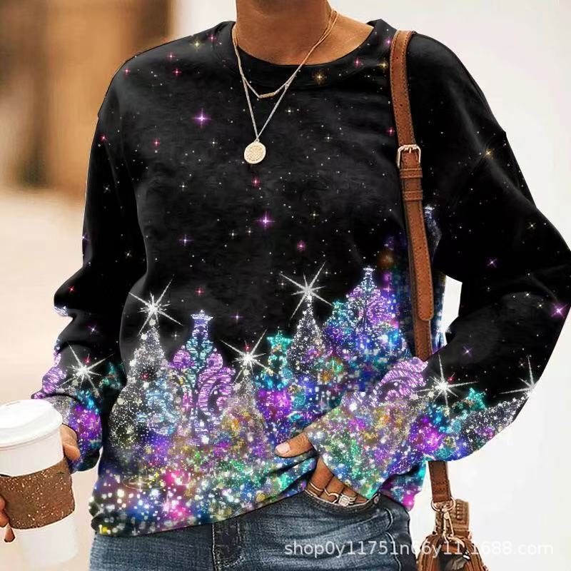 Cross-border Hoodie Christmas Street 3D Digital Print Women's Trendy Casual Round Neck Top